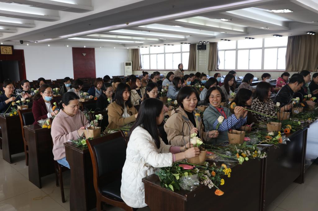 为了进一步丰富校园文化生活,增强教职工的凝聚力,3月8日上午,我校在十楼会议室召开了“魅力女性,尽享花样年华”插花联谊会,党委书记周贵斌、纪委书记赵春河、副校长赵国华参加了联谊会,并代表校党委班子向全校女教师送去了节日的祝福。