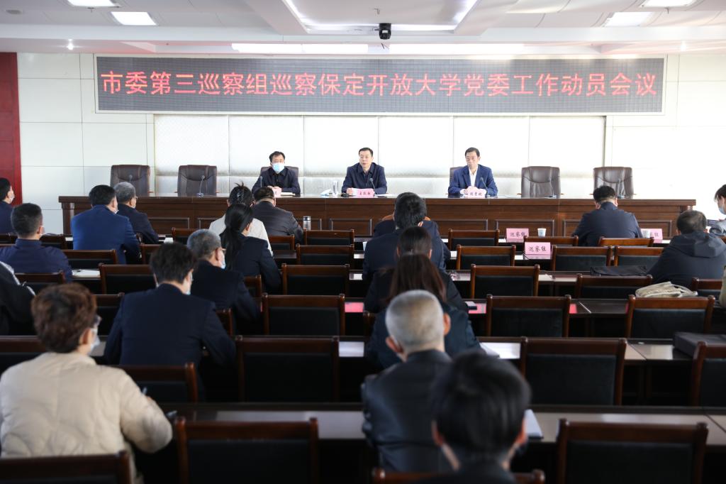 按照市委统一安排部署,11月4日,市委第三巡察组正式进驻保定开放大学开展常规巡察,并召开巡察工作动员会。第三巡察组组长王敬朝作巡察动员讲话,乐竞在线注册党委书记周贵斌主持会议并作表态发言。市委第三巡察组全体成员、乐竞在线注册全体领导班子成员、各处室、党支部负责同志以及退休干部参加会议。