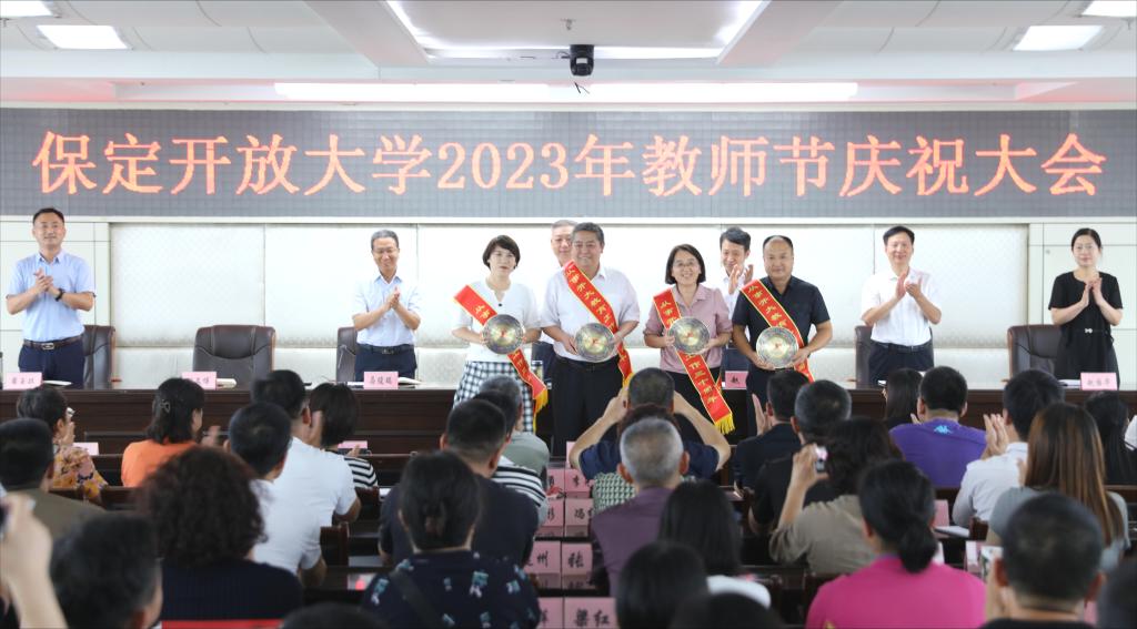 9月8日下午,我校在十楼会议室召开教师节庆祝大会,对从事开大教育工作30周年教师、驻保高校服务当地经济发展工作先进个人和保定市师德标兵等优秀教师进行表彰,校领导班子全体成员和全体教职工参加,会议由校长赵建主持,党委书记夏冰讲话,教师代表围绕学校建设与发展谈体会、表决心、展未来。