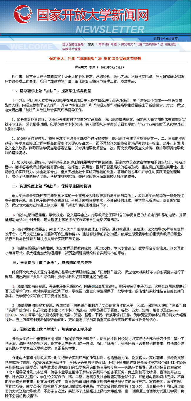 《国家开放大学乐竞(中国)网》“专题”栏目对我校综合实践环节工作进行报道