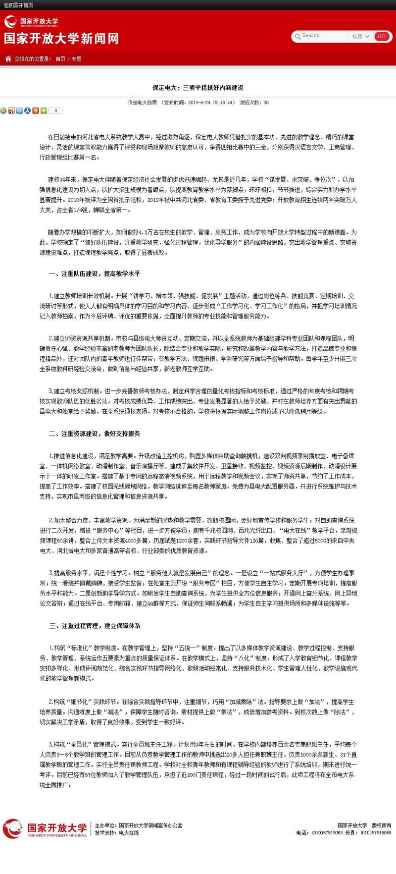 《国家开放大学乐竞(中国)网》对我校内涵建设情况进行报道