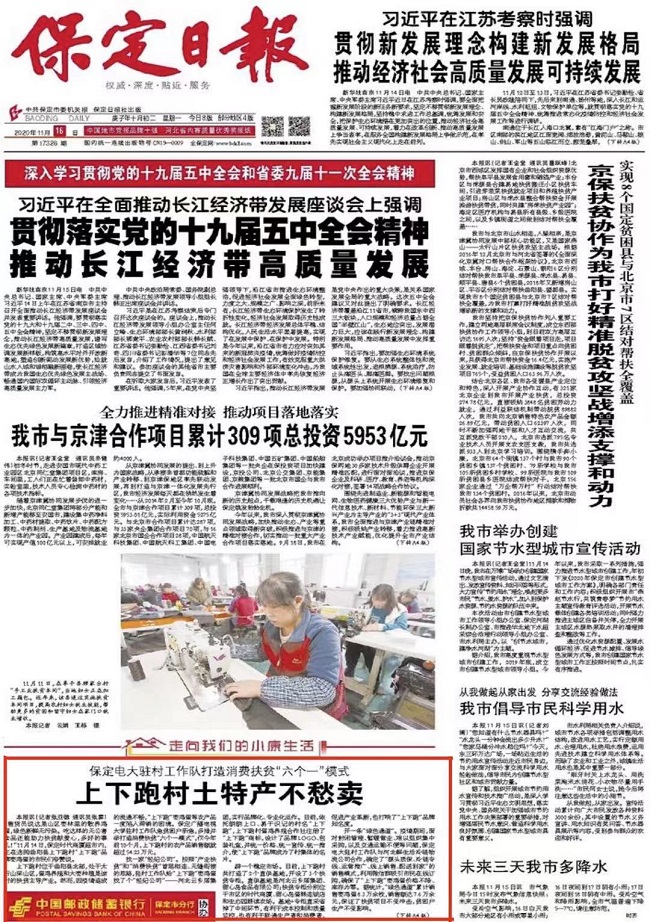 上下跑村位于曲阳县北部,处于太行山深山区,蛋鸡养殖和大枣种植是该村的扶贫主导产业。然而,因疫情造成的流通不畅,“上下跑”枣鸡蛋等农产品一度陷入滞销的困境。保定广播电视大学驻村工作队急贫困户所急,多措并举打造消费扶贫“六个一模式”,仅今年前10个月,上下跑村的农产品销售额就超过54.23万元。