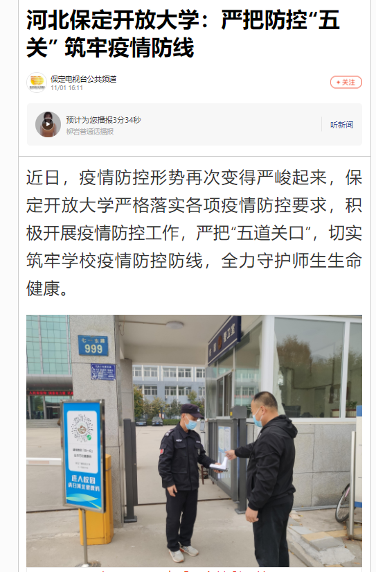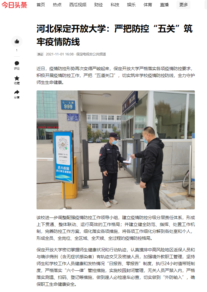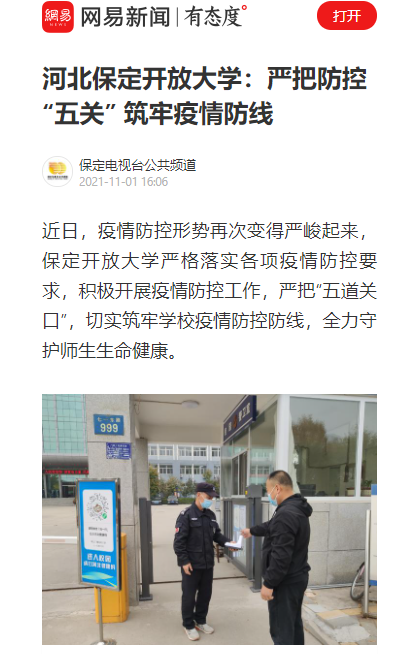 《人民日报》、网易乐竞(中国)、搜狐乐竞(中国)、今日头条、莲池融媒对我校防疫事迹进行报道