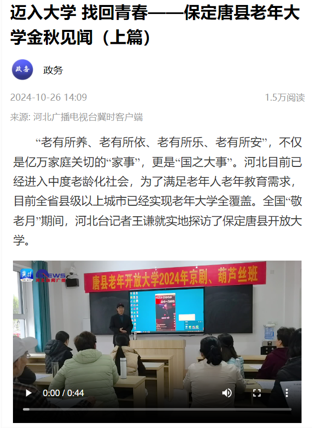 河北广播电视台乐竞(中国)广播对唐县开放大学老年教育进行采访报道
