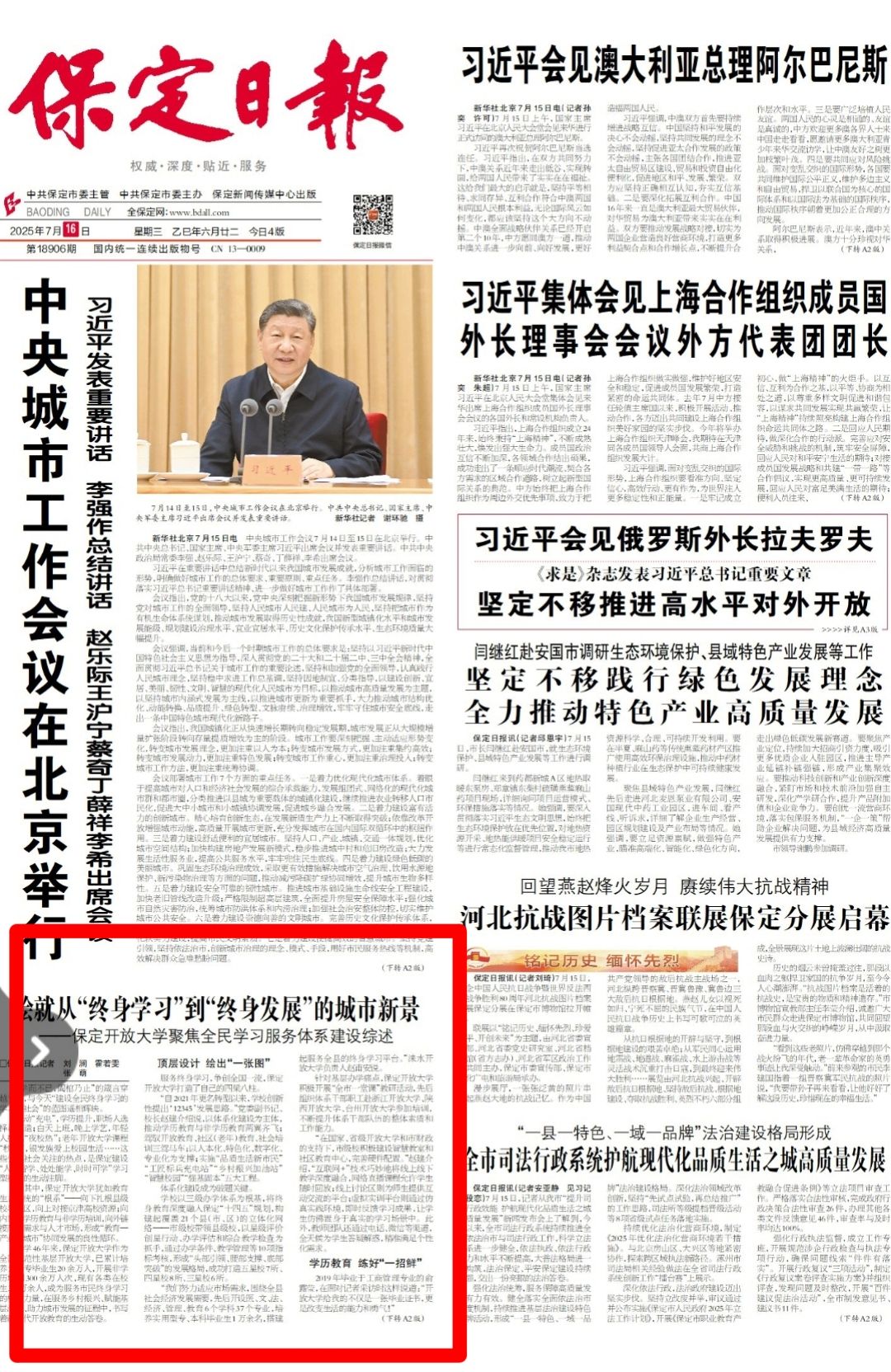 保定日报对我校全民学习服务体系建设进行报道