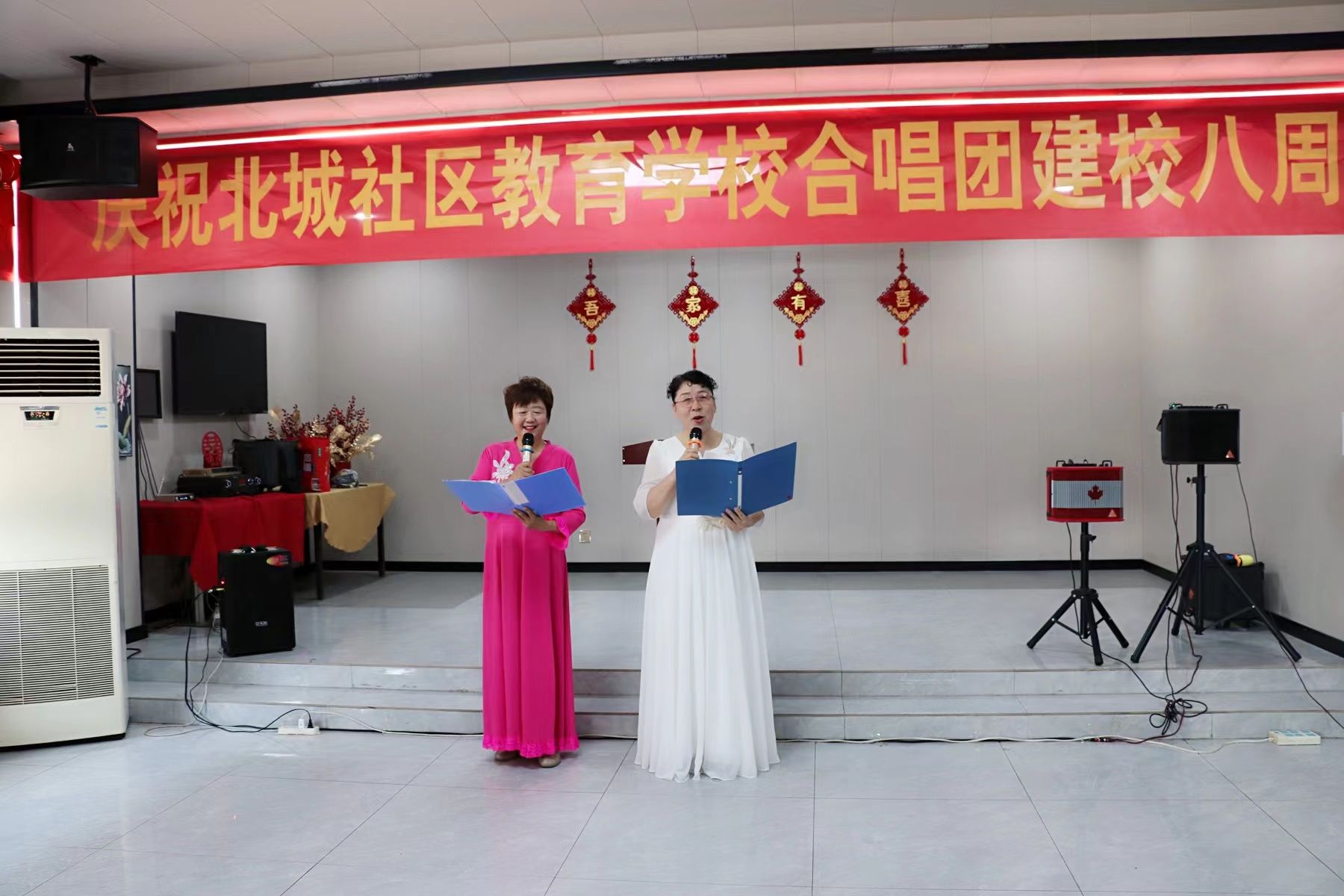 联欢会在团歌《我们爱唱歌》的歌声中拉开帷幕,表演者们用合唱、舞蹈、京剧、快板等形式共同庆祝社区合唱团成立八周年。演出现场气氛热烈、高潮迭起。