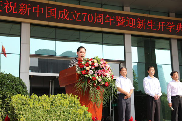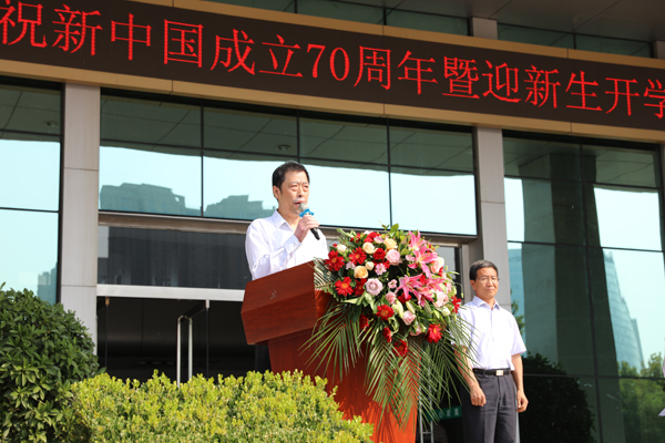 为庆祝祖国70周年华诞,增强“不忘初心、牢记使命”主题教育的实践意义,9月28日上午,我校庆祝新中国成立70周年暨迎新生开学典礼在学校广场隆重举办。校党委班子成员、全校教职员工及2019年秋季新生近800人参加典礼,校长李树进主持,党委书记周贵斌讲授“开学第一课”。