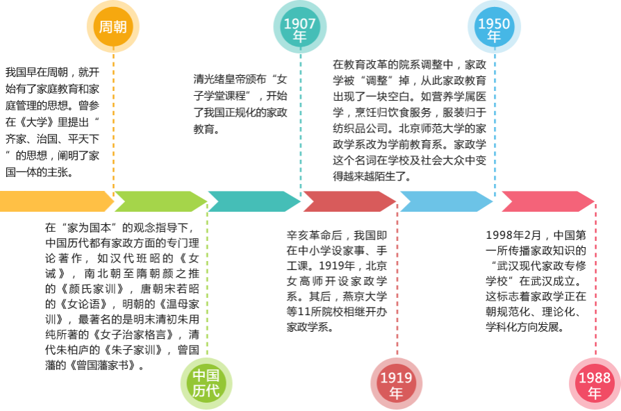 家政学由诞生到家政学在世界范围内日益受到重视,研究范围、研究程度、研究内容日益加深。