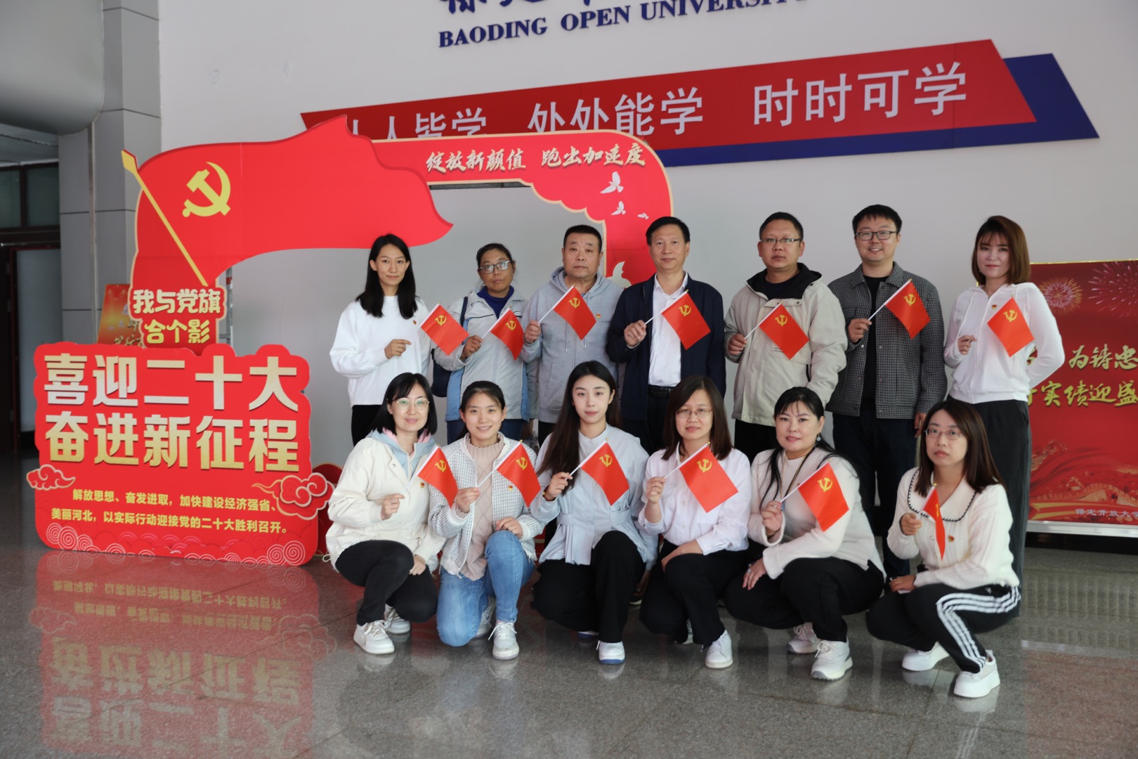为迎接党的二十大胜利召开,激励全校党员不忘初心,牢记使命,近日,我校开展“我与党旗合个影”主题活动,引导全体党员厚植爱党、爱国、爱社会主义的情感,展示“请党放心,强国有我”的精神风貌,用实际行动夯实党员对党忠诚的政治底色。