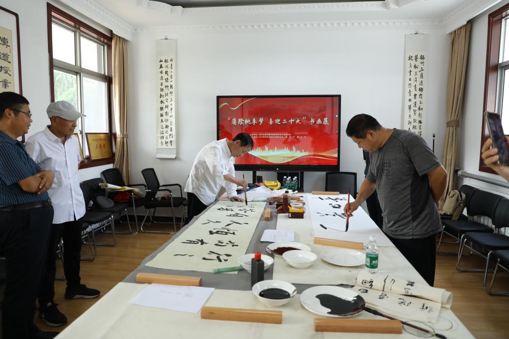 书画展上,大家先后挥毫泼墨,激情创作,场面气氛热烈。