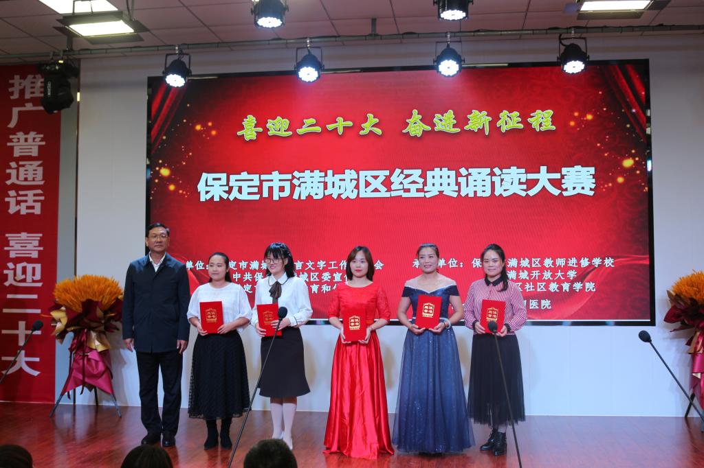 此次经典诵读比赛由满城区语言文字工作委员会、区委宣传部、区教体局主办,满城开放大学承办,旨在通过诵读经典诗文,在全社会大兴读书学习之风,有力促进创建学习型社会。比赛中,选手们用自己特有的方式,满含深情地诵读一篇篇优美的诗文,令在场的观众感受到了中华文化的魅力。