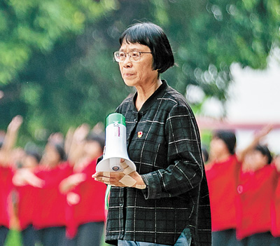 | 张桂梅在陪学生们做课间操。新华社记者 江文耀摄 |